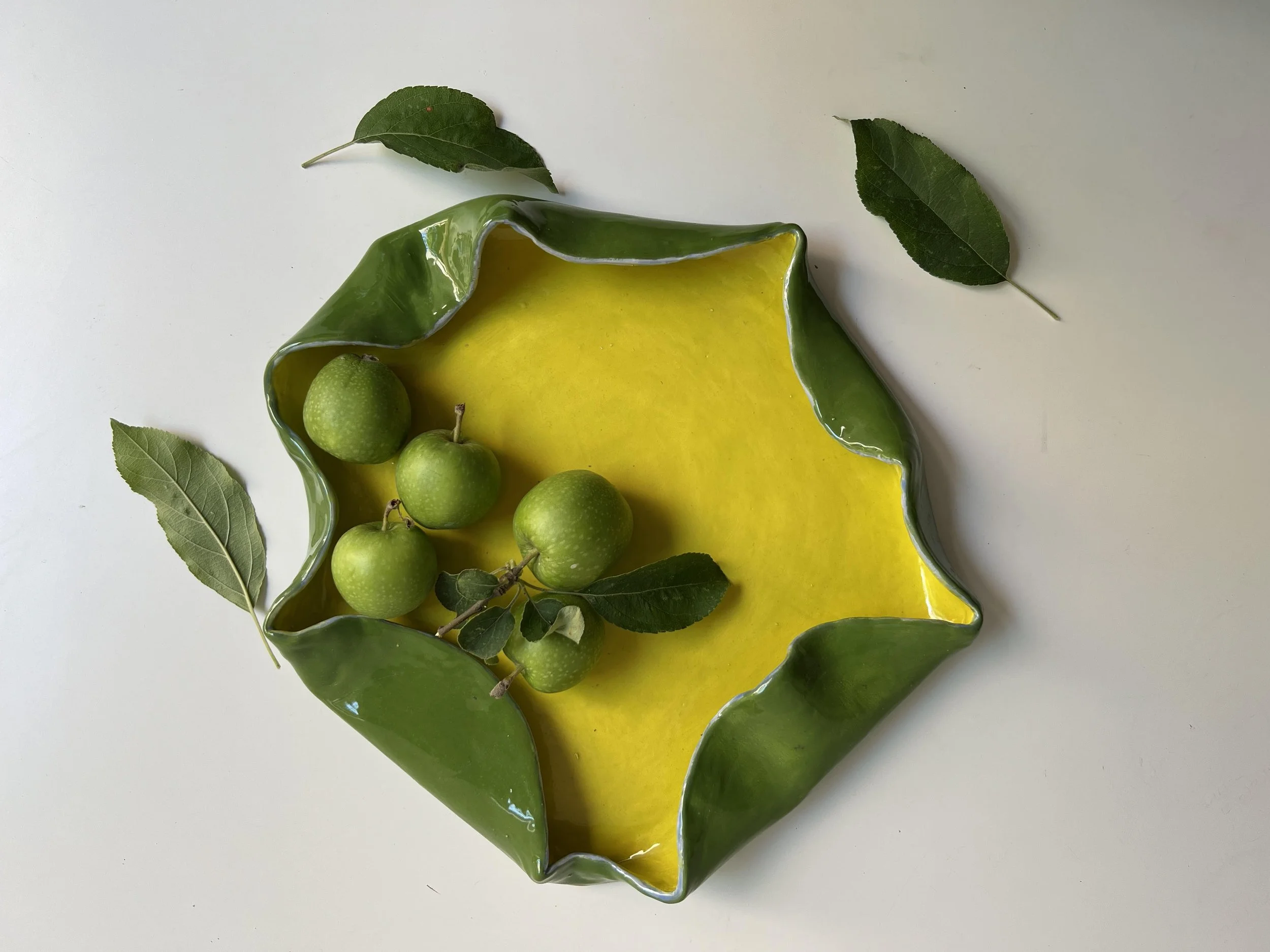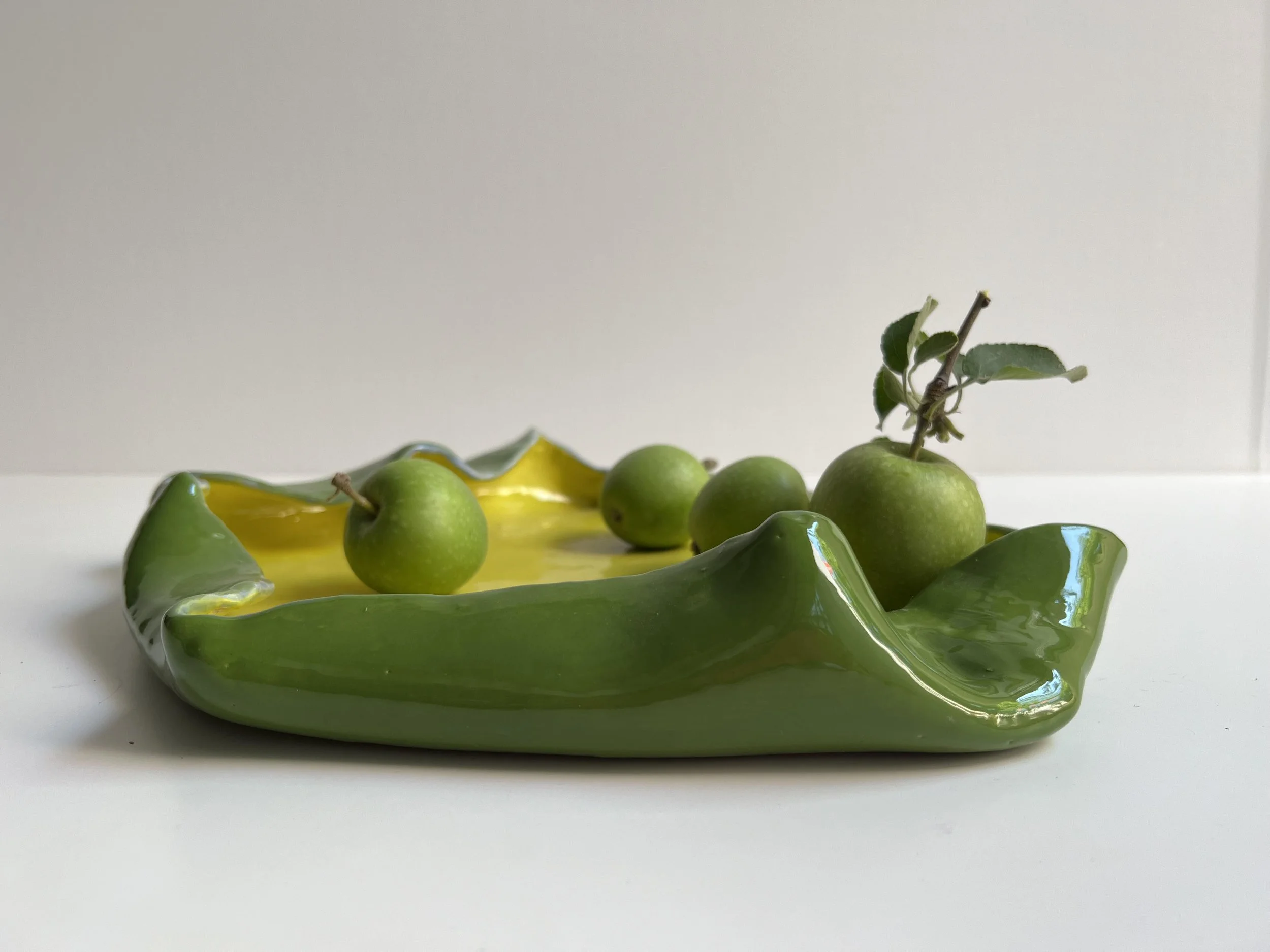 The Crumpled Ceramic Tray brings together the beauty of organic, imperfect forms with functionality. Handcrafted with a crumpled edge surface, this tray captures the essence of spontaneity and fluidity in design, making each piece unique. Perfect for serving, organizing small items, or simply as a decorative accent, it adds a touch of artistry to any space. Its sculptural form and carefully glazed finish create a striking contrast between raw texture and refined craftsmanship, making it both practical and visually engaging.