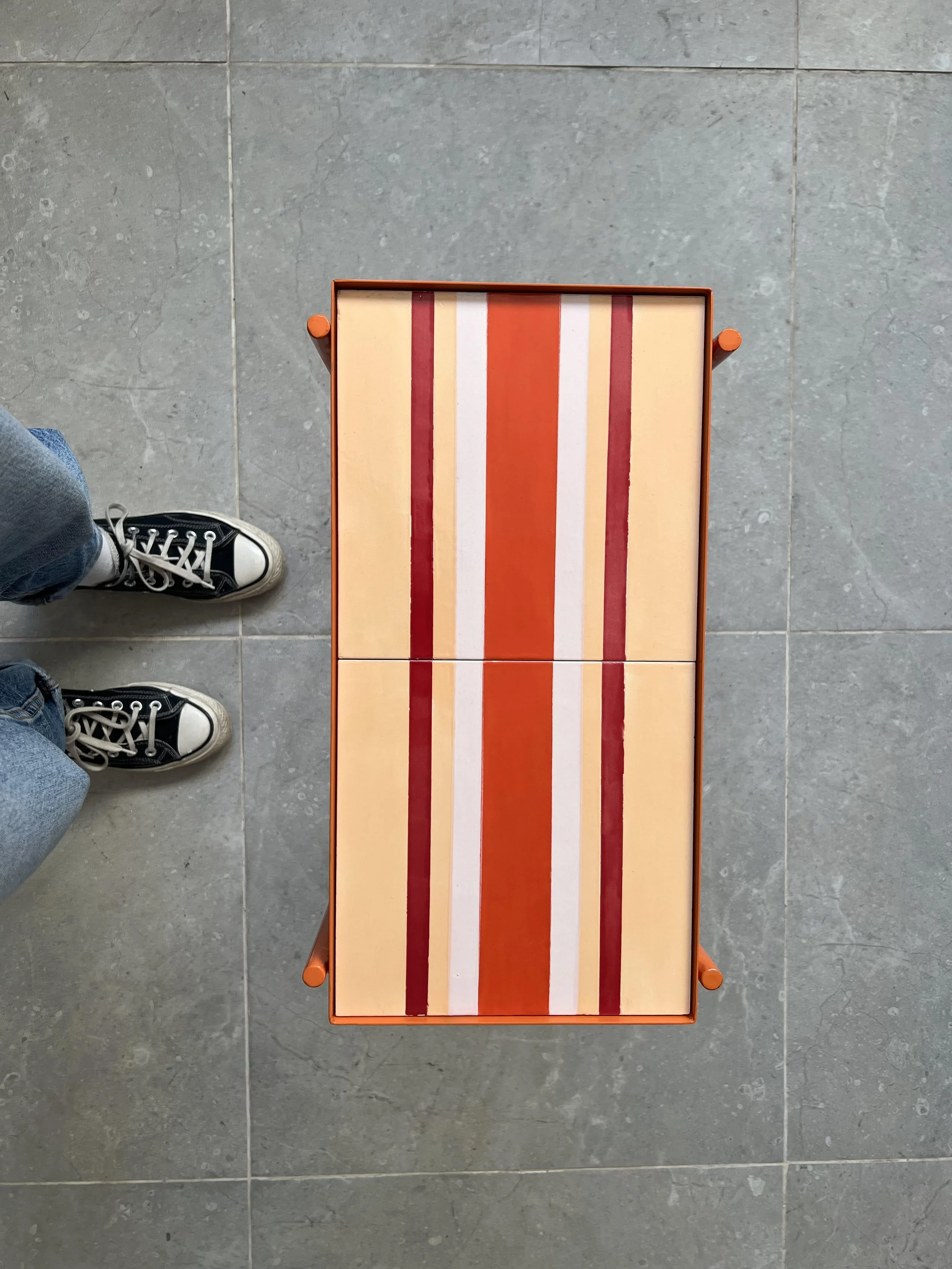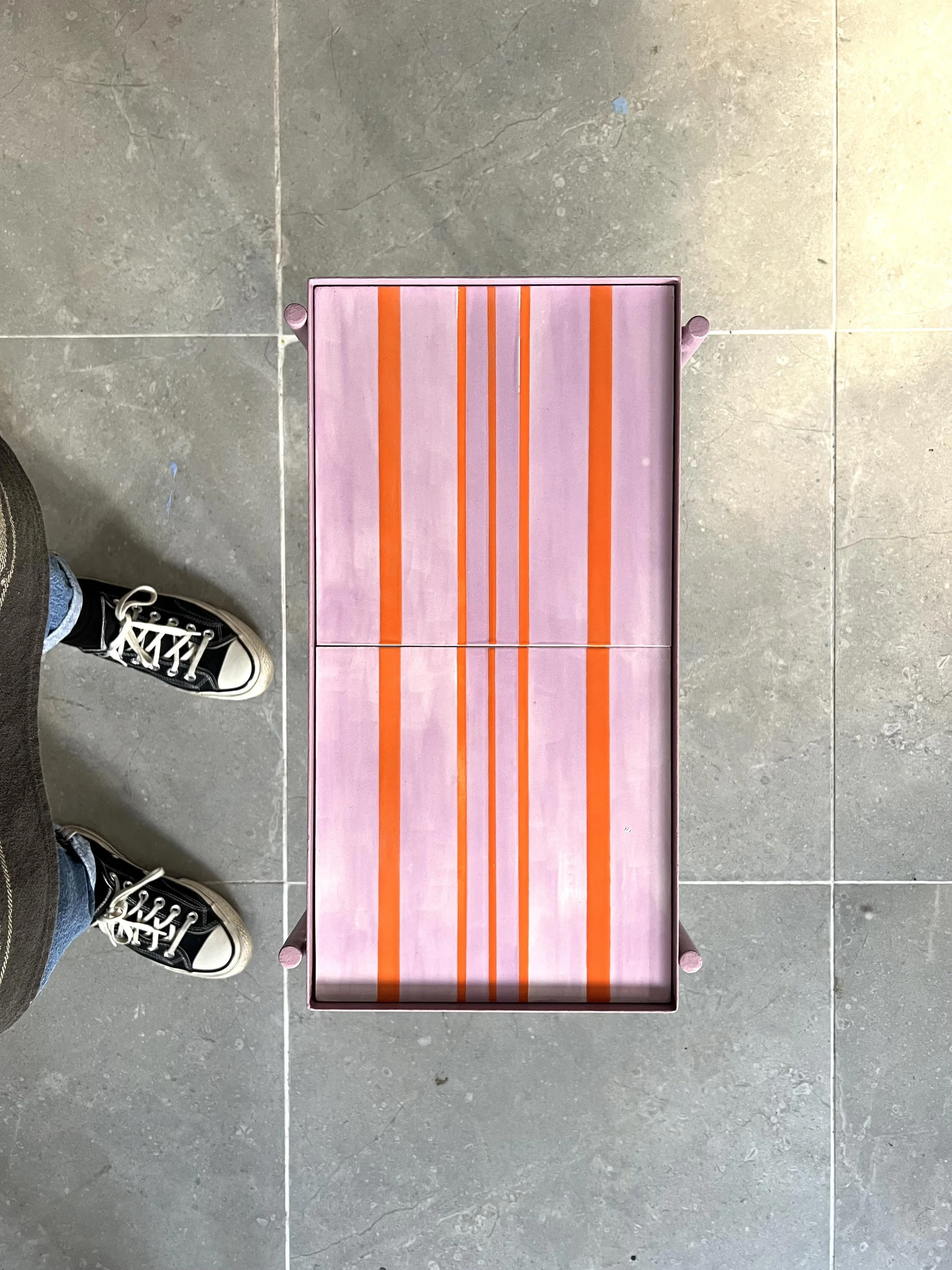 TABLE WITH HAND-PAINTED CERAMIC TILE TOP