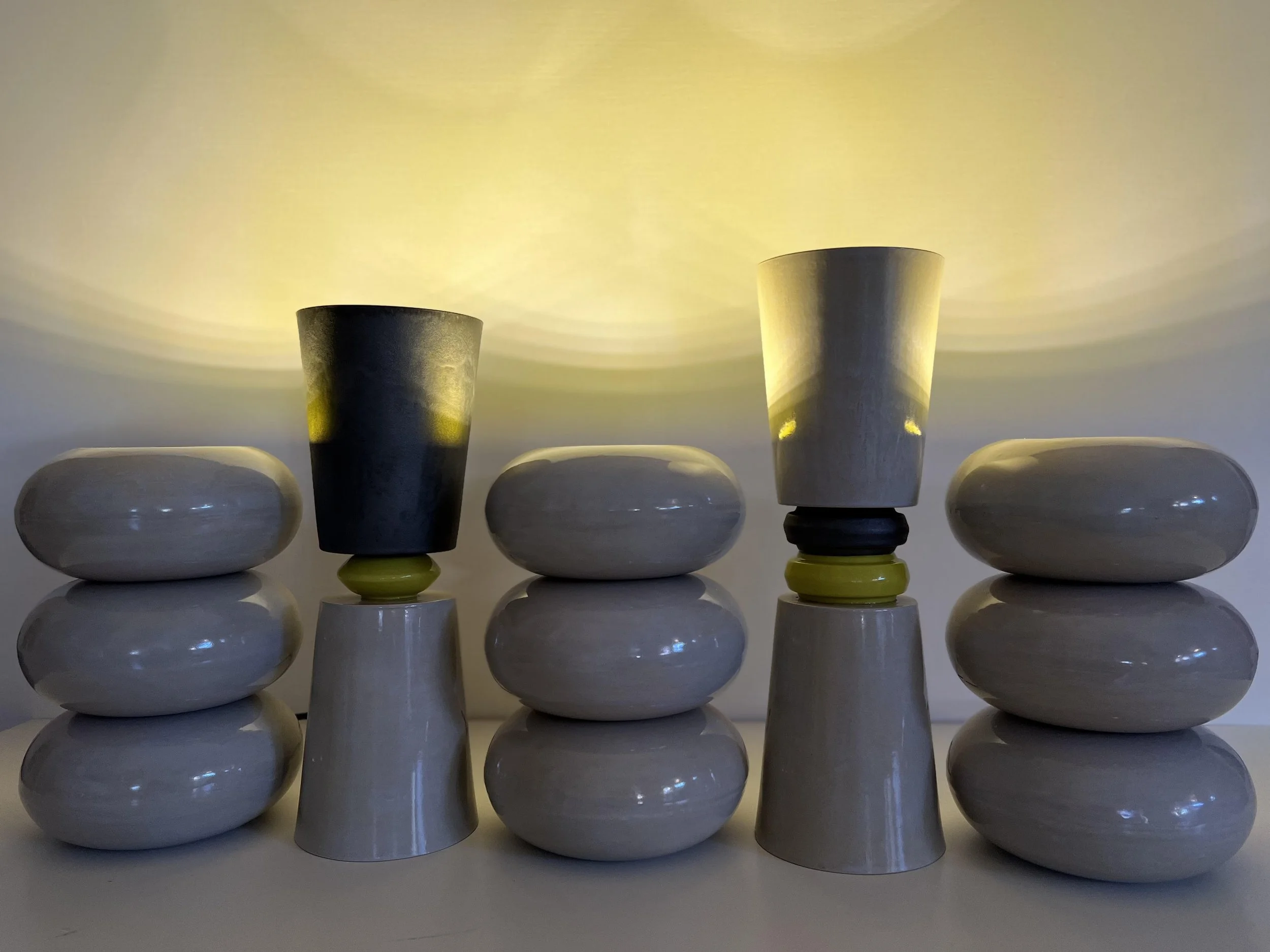 Three or four layer table lamps made of ceramic. Light bulb included.